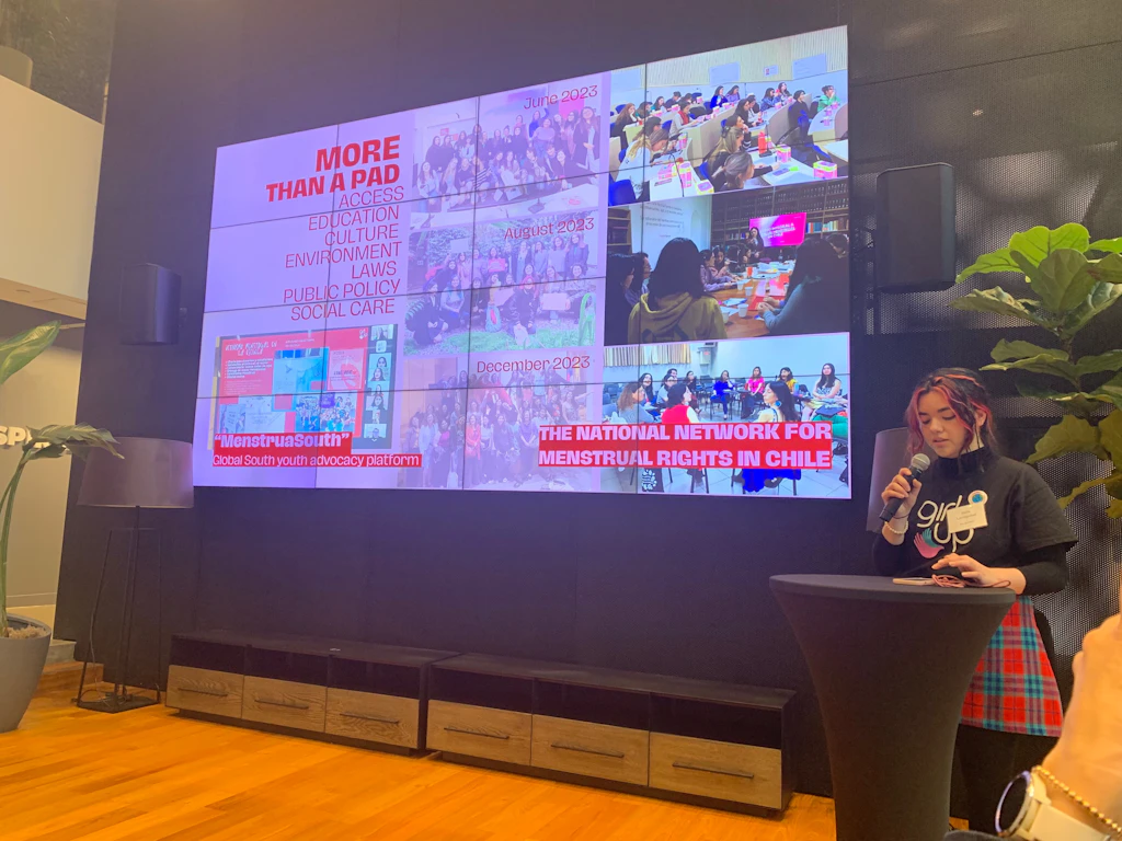 Girl Up staff member Sofía shared her experience combating period poverty in Chile, highlighting strategies to scale efforts from local initiatives to national impact.